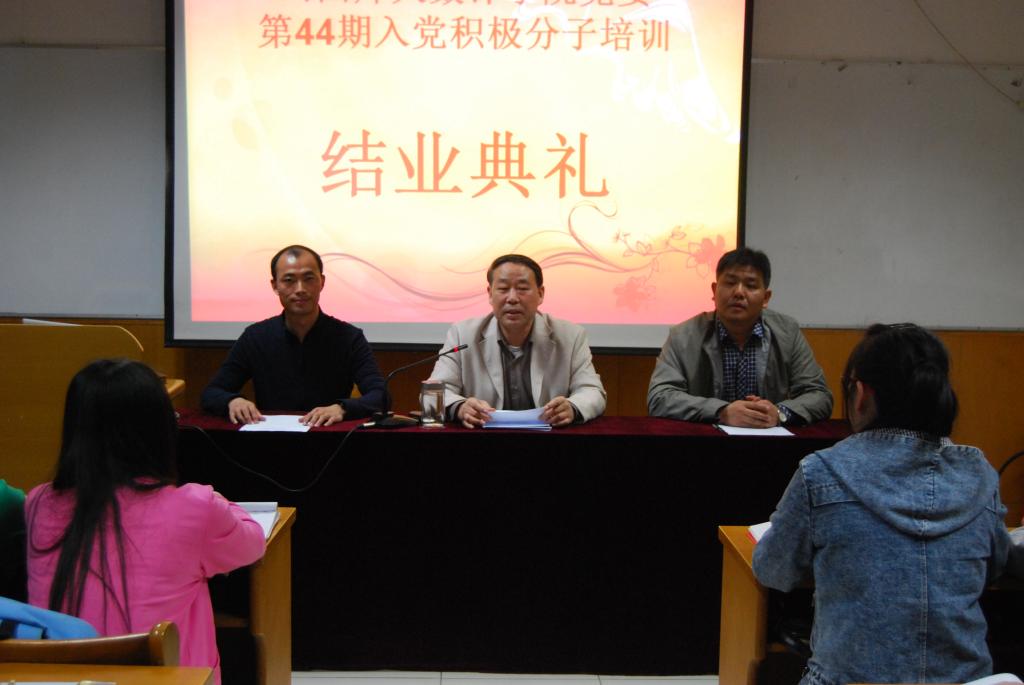 4月20日晚七点,3044永利集团有限公司在科学会堂A710举办第44期入党积极分子培训班结业典礼。公司党委书记王成喜,公司党委副书记、学工组组长张珂,院团委书记陈立记及全体入党积极分子参加了这次结业典礼。典礼由陈立记老师主持。