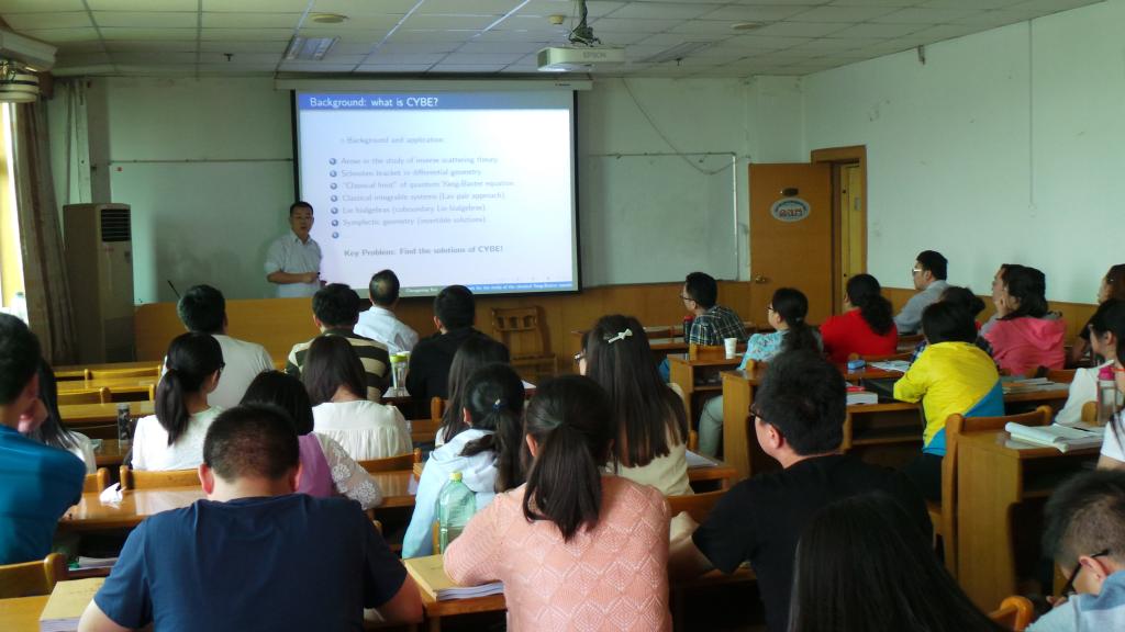 报告主要从几何、物理、李代数等方面介绍了经典Yang-Baxter方程的来历、 重要性、热门问题以及白教授自己这些年来有关经典Yang-Baxter方程所做的一些研究工作。白教授在讲述过程中风趣幽默,不时地穿插介绍了一些著名数学家的故事,引起大家的阵阵笑声,让大家看到了数学家们锲而不舍、精益求精的探索精神。最后,报告在全场持续热烈的掌声中圆满结束。