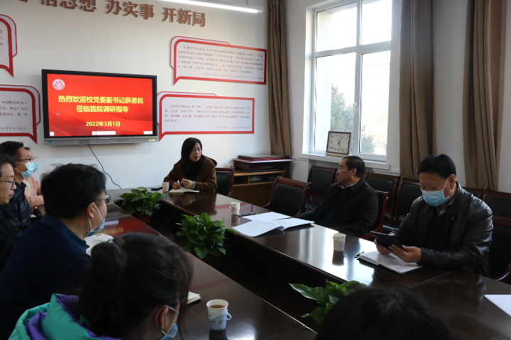 3月1日下午,公司党委副书记薛勇民、员工处处长王军峰来3044永利集团有限公司调研指导工作,与院领导、学工组组长、团委书记和专职辅导员座谈交流。
