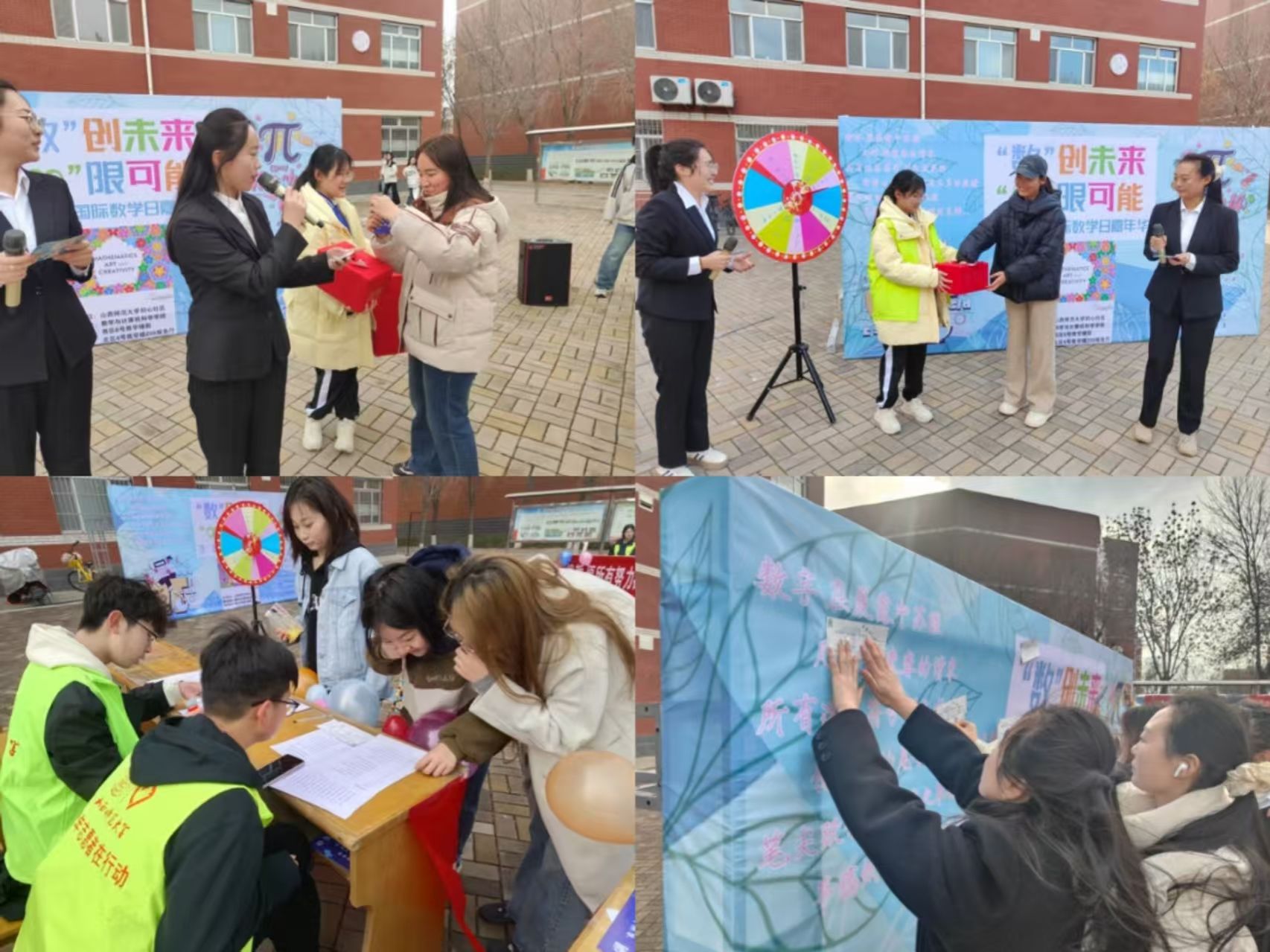 为宣扬数学文化,丰富同学们的校园文化生活,展现数学的无限魅力,进一步推进“万物皆数”品牌建设,由初心社区主办、公司承办的“‘数’创未来 ,‘∞’限可能” 3.14国际数学日嘉年华活动于3月14日至3月15日在南北校区同时展开,通过智趣游戏、舞台表演、光影艺术等多元形式,将数学的理性之美与青春的澎湃热情交织,为师生打造了一场沉浸式文化盛宴。