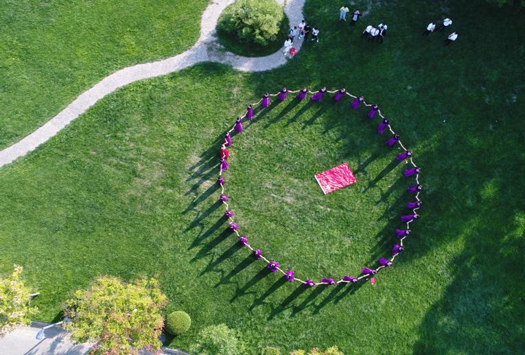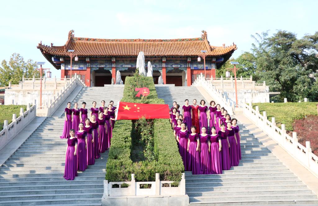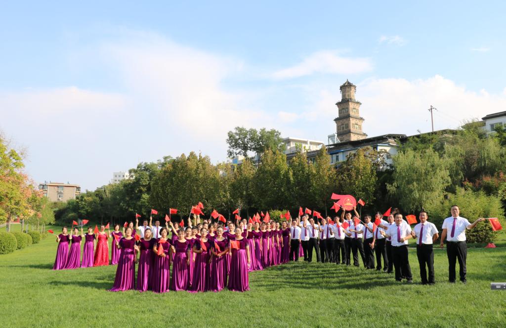 9月25日,莳英园内,公司女教职工“秀”出自己的风采,组合出“70”、“党徽”等别样的造型,高吭吟歌,献礼祖国七十华诞。绿茵场上,“我和我的祖国,一刻也不能分割,无论我走到哪里,都流出一首赞歌……”大家共同歌唱《我和我的祖国》,表达了公司教职工热爱祖国的豪情,唱出了对祖国赤诚的心、火热的爱。最后,公司全体教职工手举鲜艳红旗,洋溢着幸福的笑容,在巨人广场进行了合影留念。
