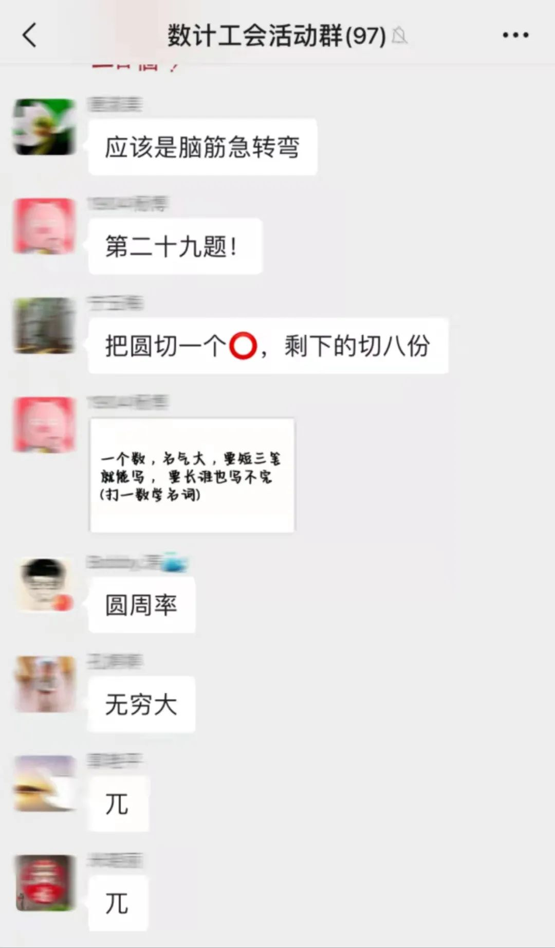 活动开始后,公司教师兴致勃勃地展开了竞猜,大家敏捷思考,踊跃答题,尽展数学魅力。群内气氛被老师们的活跃思维一次又一次的推向高潮,经过欢乐的比赛之后,公司老师过五关斩六将,享受到比赛的乐趣的同时也赢得了精美的奖品,每位老师都意犹未尽。