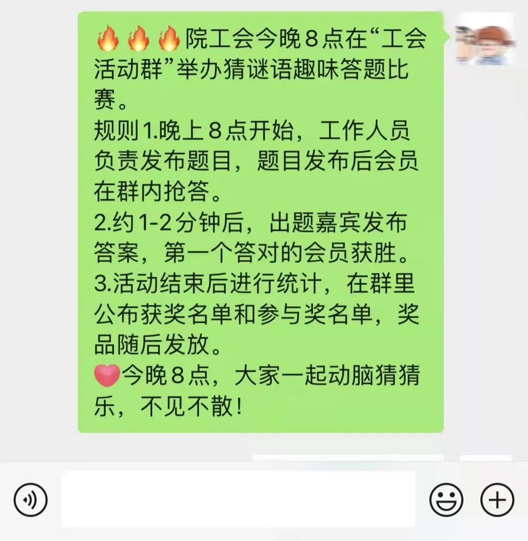 阳春三月,乍暖还寒中,3044永利集团有限公司的女教工们又迎来了一年一度的“三八妇女节”。为庆祝“三八”女神节,院工会于3月7日晚8时举行线上猜谜语趣味答题比赛。