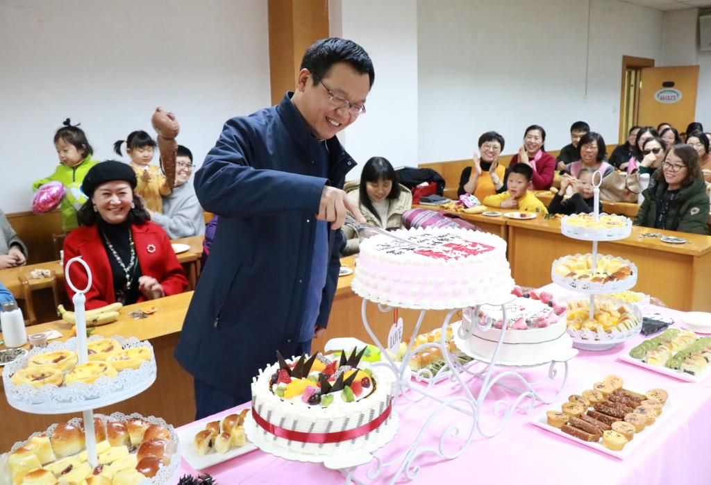 郝红霞书记和史建红经理共同切蛋糕,精心设计的蛋糕上分别写着“万物皆数”、“念念不忘,必有回响——SCI+基金”等字样,在甜美中蕴含着数学文化和老师们的新年心愿。老师们先后登台表演节目。小朋友们也带来了精彩的节目:T台走秀、葫芦丝和歌曲《新年好》,增添了喜庆,显示了数计大家庭的团结有爱。